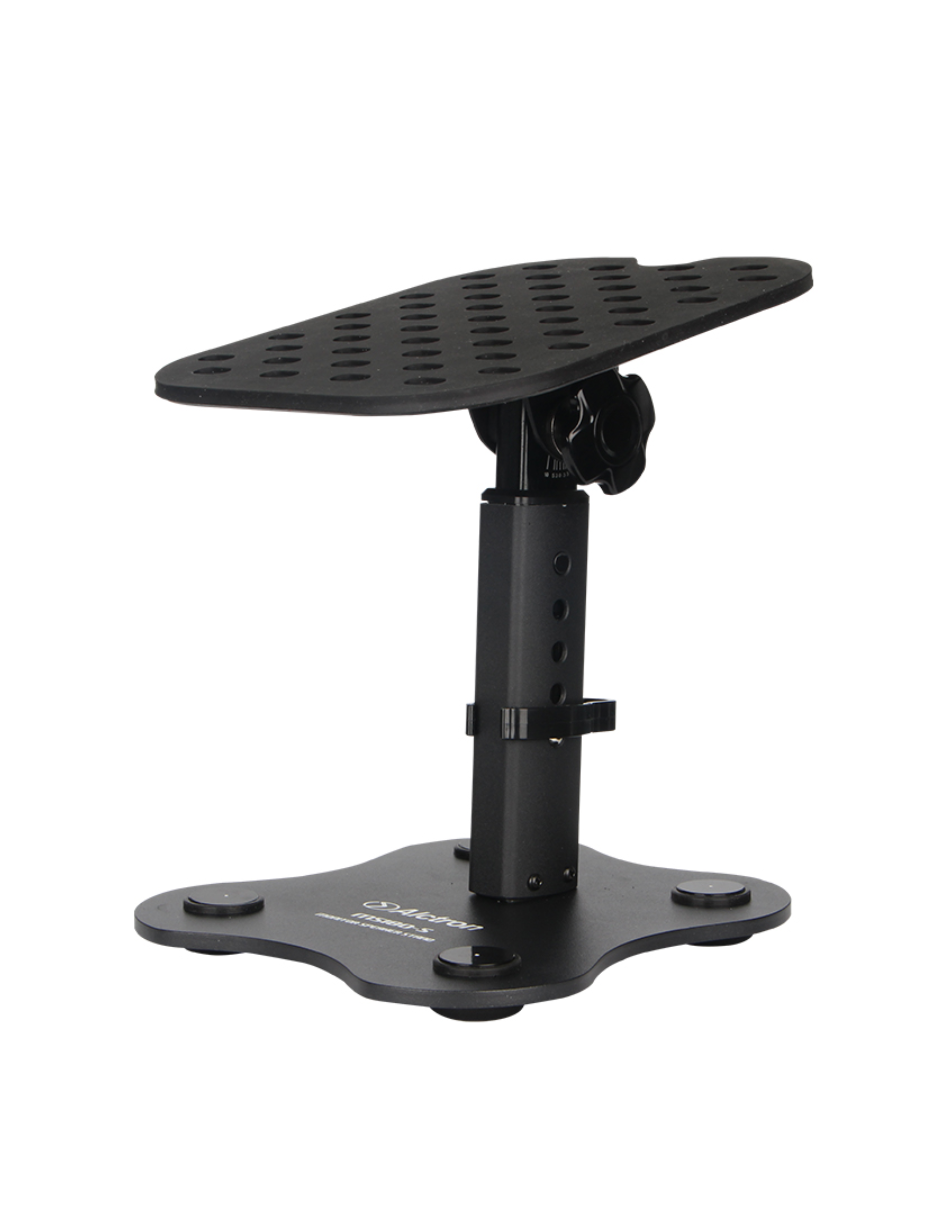The MS180 is a desktop speaker stand which made by solid steel, alum and rubber. Solid steel and aluminum core components that are built to last. The height adjustable and angle adjustable allow you to set the optimum speaker position in your set-up. Only in this way can you feeling the perfect sound. The rubber cap in the top plate and four rubber pads reduce the vibration during listening experience. So whether you are an audiophile, DJ, media production or just enjoy listening to music, MS180 is a good choice for you.