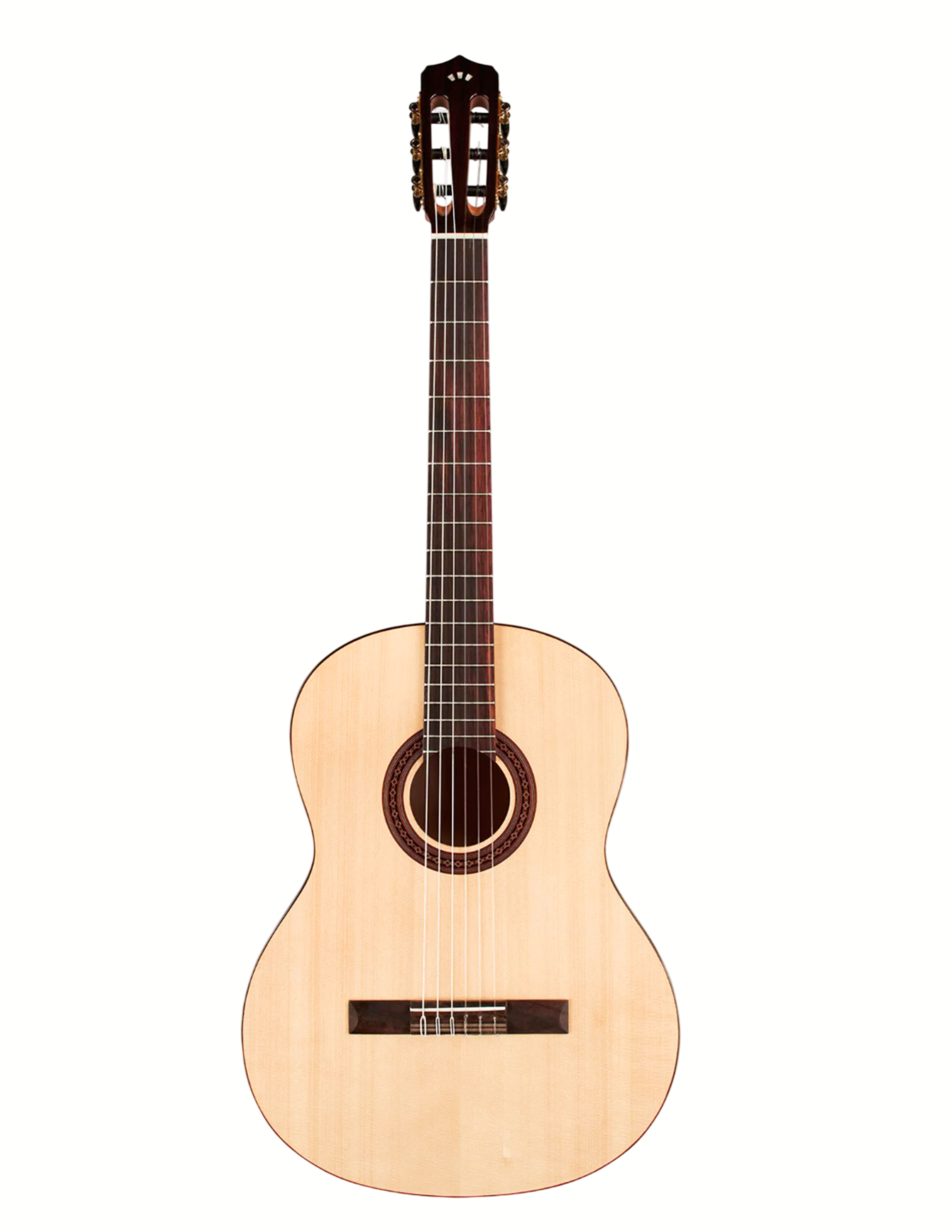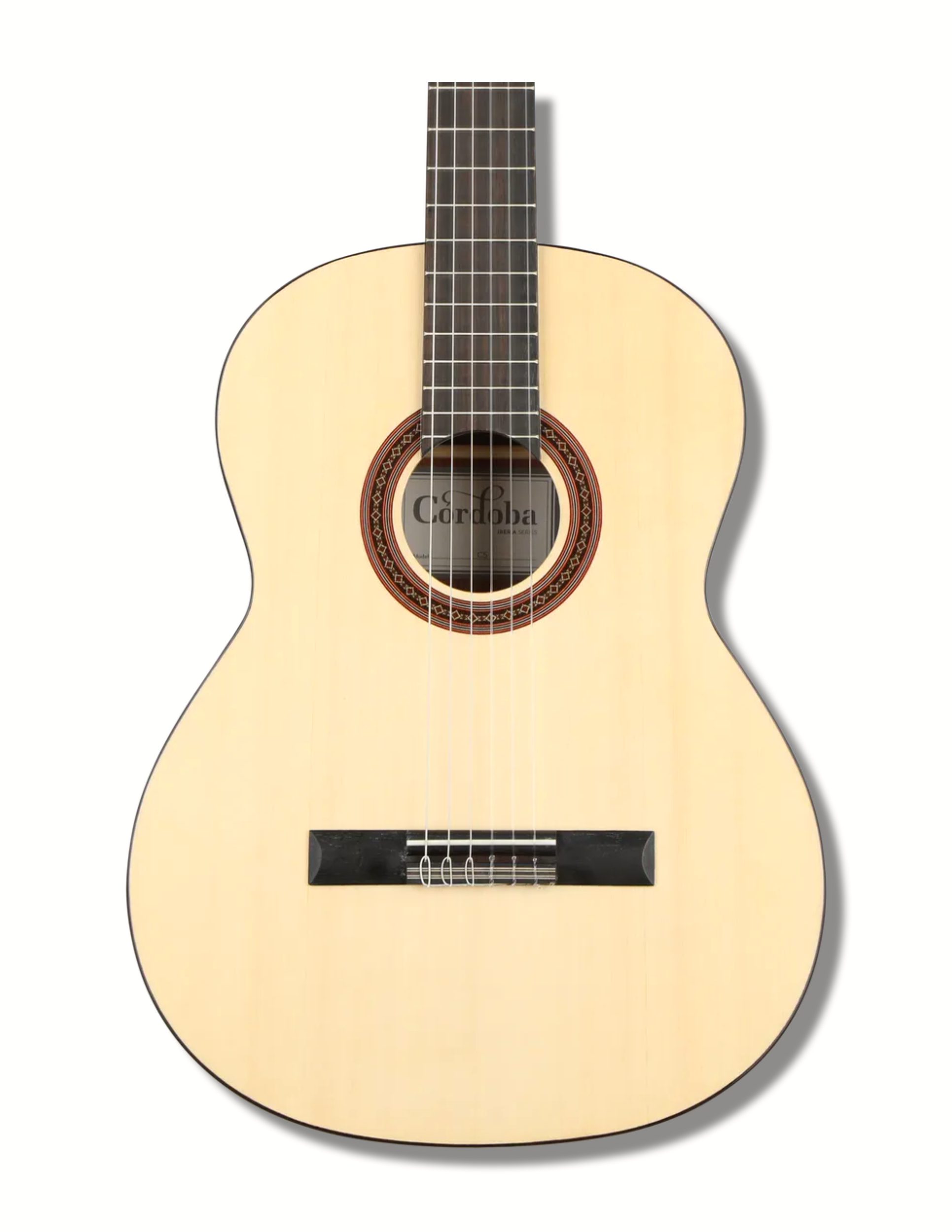 Based on Córdoba’s flagship C5, the C5 Spruce adds a new option to a fan favorite. Perfect as a first nylon-string guitar, this lightweight model is built with a solid Engelmann Spruce top and Mahogany back and sides to produce a clear, powerful tone with beautiful sustain. Handmade in the traditional Spanish style, the C5’s carved headstock, hand-inlaid wood rosette, Pau Ferro binding, Savarez strings, and glossy PU finish result in a guitar that truly stands out from all other entry-level options. A lightweight adjustable truss rod is built into the neck for stability. Available in Natural finish with solid Engelmann Spruce top.